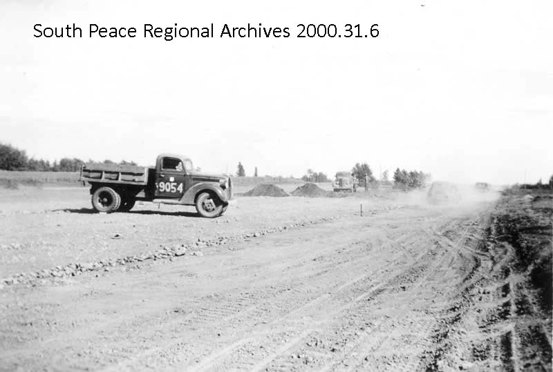 Image: A portion of the newly built Alaska Highway at Ft. St. John, 1942 (SPRA 2000.31.6)
