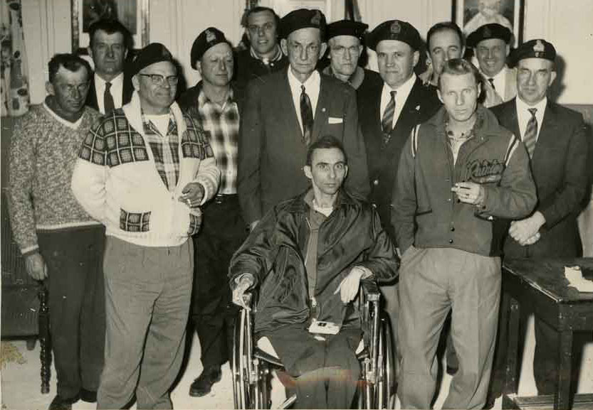 Image: Male members of the Sexsmith Legion. One photograph identified as Edgar Henning, Stanley Kulicki, Jock Thomson, Adam Grotkowski, ?, George “Knobby” Clark, Joe Shannon (seated), Fred Bohn, Charlie Stojan, Andy Innes, Danny Rycroft, Gordon Mates, Matt Chrenek. C. 1960. (SPRA 644.01.13)