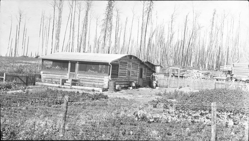 Image: Log house of B. T. and J. S. Gray. Crooked Creek, Alberta, August 16, 1933. Photographed by W. D. Albright. (SPRA 362.02.13.45)