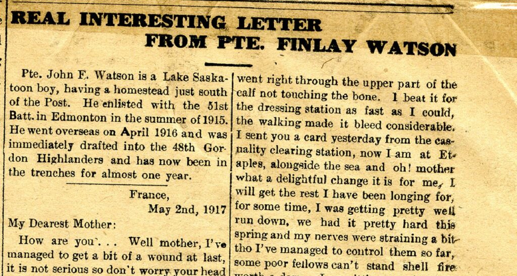 Image: A clipping from the Lake Saskatoon Journal, June 16, 1917