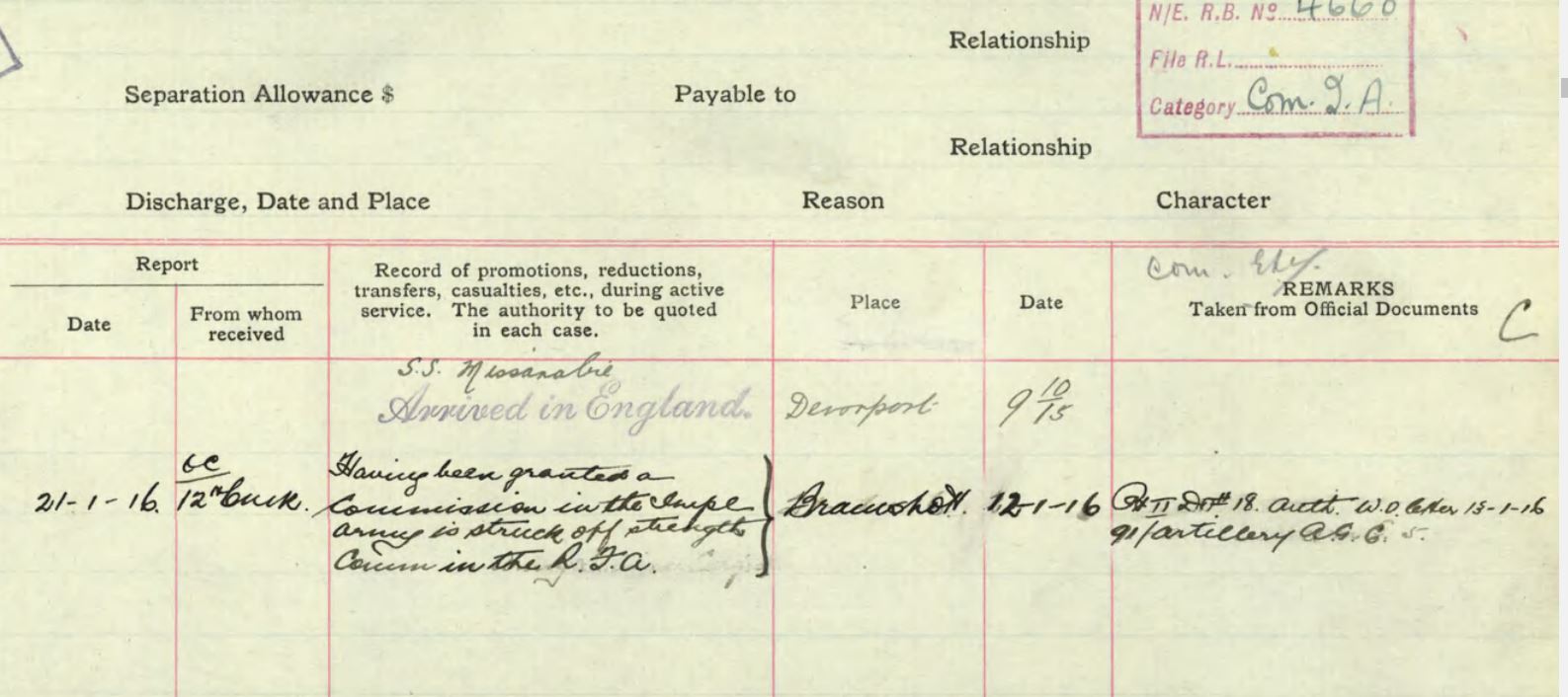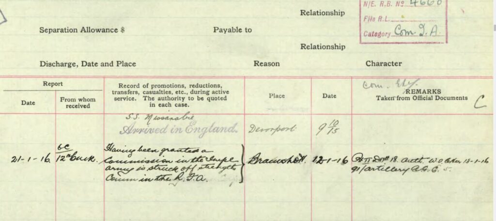 Branch: 12th Regiment, Canadian Mounted Rifles; Royal Field Artillery