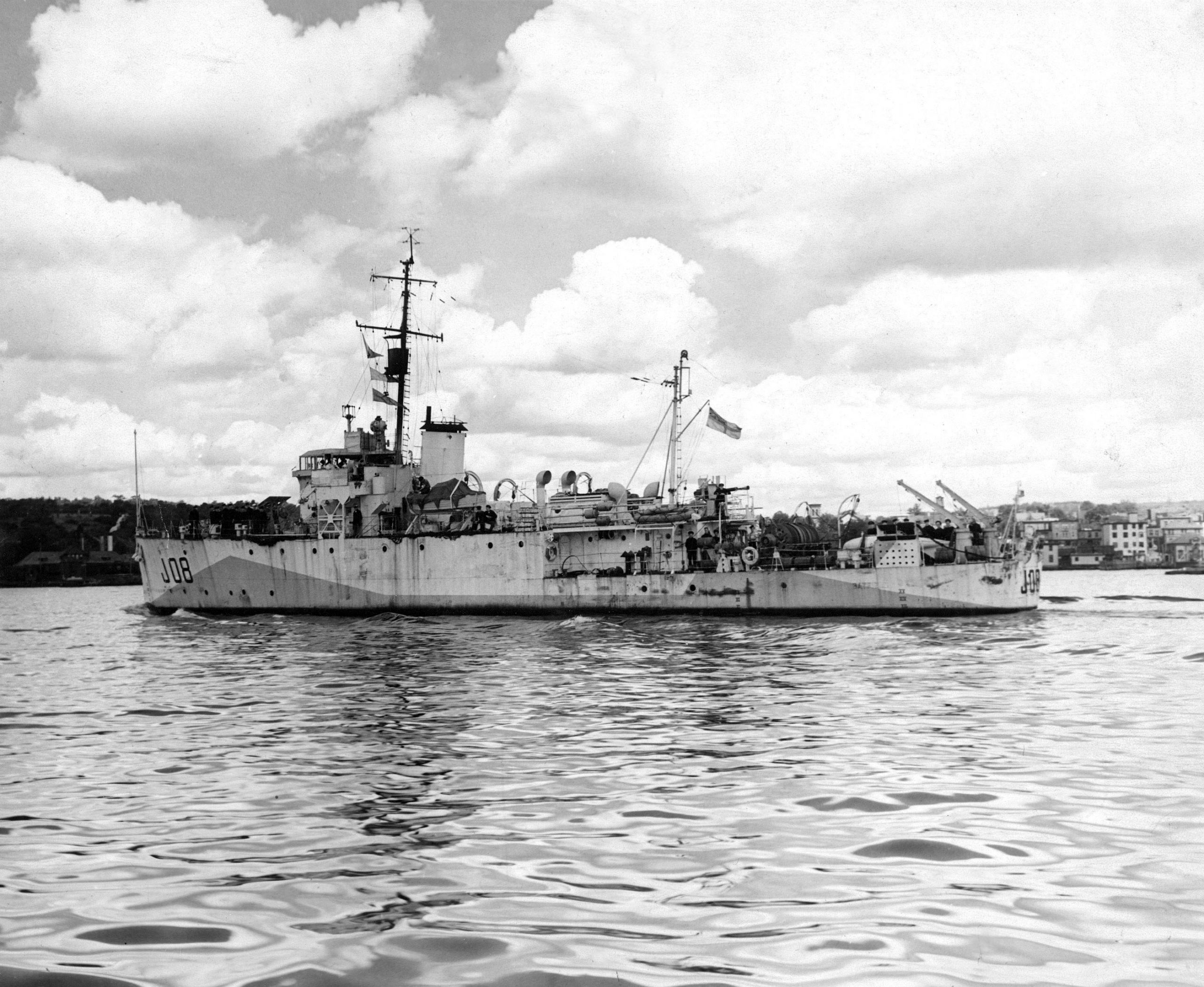 Image: The HMCS Bayfield was a minesweeper which patrolled the east coast from Boston to Halifax, dragging the ocean waters for mines planted by German U-boats. (SPRA 264.02)