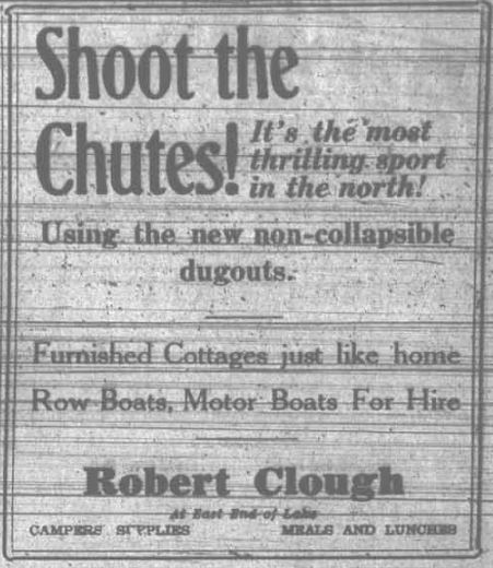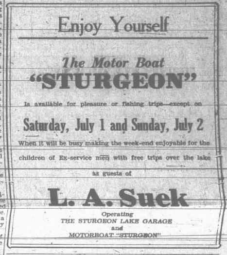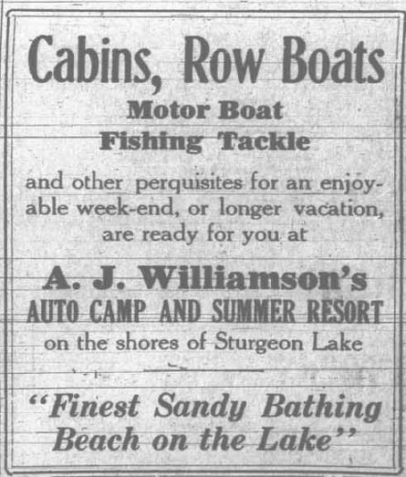 Our blog in July 2014 printed an article from 1925 that said “Sturgeon Lake, with a good road to it, could never be prevented from becoming the most popular place in the north country during the summer months.”  Well, eight years later in 1933 there must have been a road, as there were amenities galore.  You could rent a rowboat, motorboat, or cottage, eat in a restaurant, dance in the pavilion, shoot the Chutes, and get your hair done!