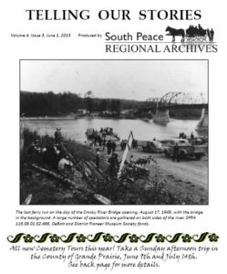 Earlier issues of “Telling Our Stories” are available online, or you can become a member of the South Peace Regional Archives Society and receive it