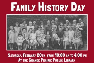 South Peace Regional Archives and the Grande Prairie & District Branch of the Alberta Genealogical Society are happy to announce our annual Family History Day.