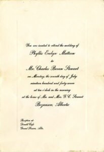 Image: SPRA fonds 059 Todays “From the Vault Friday” features a wedding invitation from the Phyllis Stewart fonds (fonds 059). Phyllis Evelyn Mattoon was born