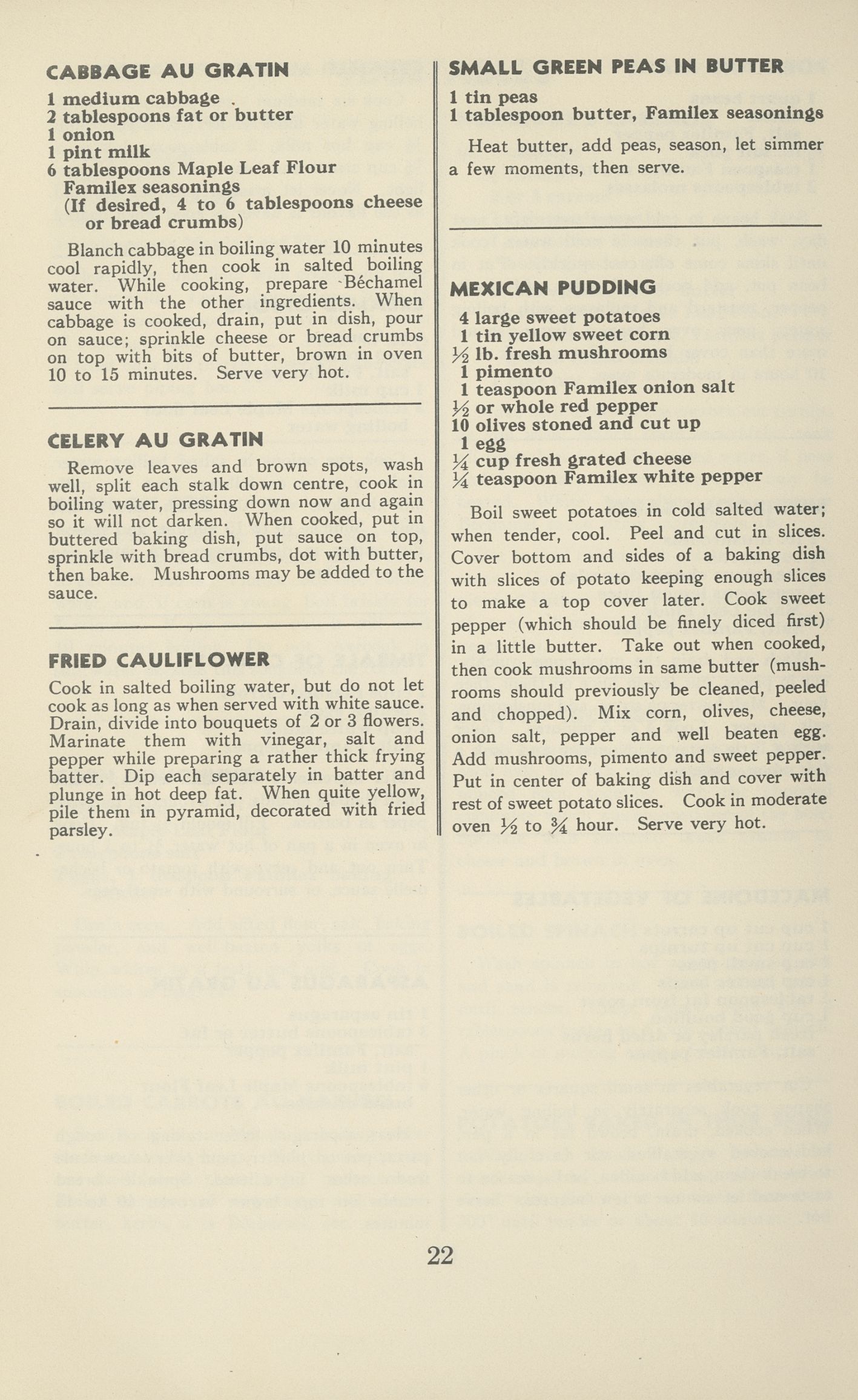 Growing up, I didn’t have access to the wide variety of produce I enjoy eating today. The first time I had fresh pineapple and mushrooms instead of the tinned version I was well into my teens, and it was around the same time that I was introduced to sweet potatoes as well. For that reason, I was intrigued when I saw the recipe for Mexican Pudding in a copy of Culinary Secrets, produced by the Familex Products Company in the mid to late 1930s. It incorporates both mushrooms and sweet potatoes, and I couldn’t help wondering whether certain types of produce might have been somewhat rare in Grande Prairie at that time. The name suggests that the recipe developer might have considered it rather an exotic dish.