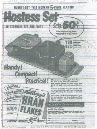 There was a wide variety of items for the ladies to send away for, as these ads show. By 1950 plastic items, still a novelty then, were being introduced. Some products had “premiums” right in the package. I am watching for ads for those.