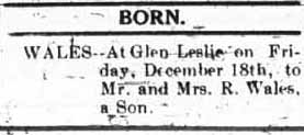 The Dec. 22, 1914 edition of the Herald newspaper has a small announcement at the bottom of page 1 – a son born to Mr. and Mrs. R. Wales on December 18. I had found this item some time ago, and made a copy for Charlie’s niece Clarice. She passed it on to Charlie, and one day when we were having lunch we asked him about his birth announcement being in the newspaper so soon. He told us that the Edson Trail passed between their house and barn, and a lot of people stopped in on the way by. He figured someone must have been there and knew about the new baby in the house, and when they got to town, passed the news around. I think it is really special to find these old birth announcements and especially one for a great fellow like Charlie, who turns 100 years old on Thursday.
