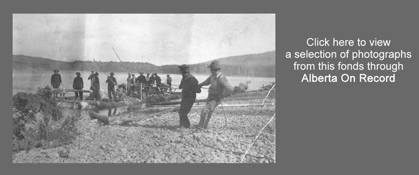 The fonds follows James Somerville’s career as a surveyor in the Peace region, and his and Eva’s lives as homesteaders. This includes photographs is from Henry Selby’s 1905 survey of the 20th base line west of the fifth meridian. The photographs show the environment of the area east of the Smoky River, the activities of his survey crew, and the life of a surveyor.
