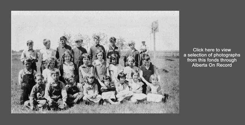 The fonds consists of copies of 35 photographs which Martha took during her teaching career. The subjects are her time at Camrose Normal School, her students and the schools at which she taught, as well as a few collected from others: Bezanson, Sexsmith, Wellington, Camrose Normal School, Wembley, Bezanson, East Smoky, Currie, Clairmont, Kleskun Lake. There are also two of Goodwin Store, where she boarded when she was teacher at East Smoky School.