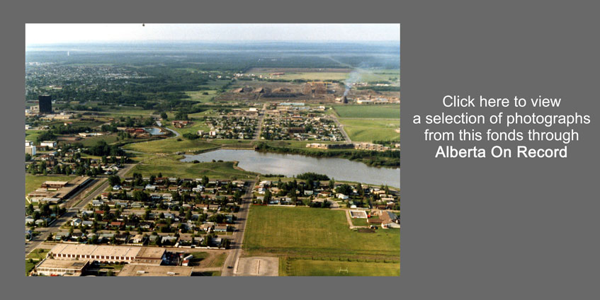 Date: 1964-1995 (date of creation) Scope and content: The series consists of an invitation to the 10th Anniversary of Grande Prairie, 11 slides of buildings in Grande Prairie, the DeBolt Rodeo, Teepee Creek Cemetery, the Peace River Valley, and Dunvegan Bridge, 1 aerial photograph of Grande Prairie during the early 1970s when the Grande Prairie Regional College was being built, 8 aerials of various views of Grande Prairie’s Bear Creek valley in 1995, 1 photograph of 3 new houses along an unpaved street, a building permit a bowling membership card and an application for cable television service. Physical description: 0.5 cm textual records 19 photographs 11 slides Access points: • Graphic material – photograph (documentary form) • Textual record (documentary form) |