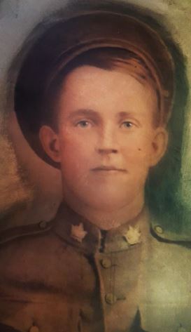 Percy was born in Fort Frank on September 21, 1893. His parents moved to the South Peace with their family in 1911. Percy filed on a homestead at NE 22-71-4-W6 and listed Grande Prairie as his residence at the time of his enlistment in March of 1916. He listed “steam engineer” as his occupation.