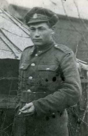Herman Klukas was born in Russia on July 18, 1892, and came to Canada with his family in 1894. He came up to the Peace country in 1908 and in May 1912 filed on a homestead at SE1/4 35-71-6-W6, just north of the new townsite of Grande Prairie. He abandoned this in 1913 and moved on to the Bad Heart district, where he spent the winter trapping. In July of 1915, Herman enlisted in the Canadian army. He received shrapnel wounds to his chest and abdomen in November of 1916 at Passchendaele, and a bomb wound to his left shoulder in October of 1917 at Ypres. Herman was transferred to the Canadian Forestry Corps in May of 1918 and remained in England for the duration of the war.