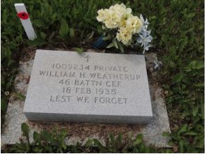 William was born in Roseneath, Ontario on June 3, 1892. He enlisted in the Canadian Army in December of 1915. On August 10, 1918, William suffered from gunshot wounds to his chest (his service file contains some unusual medical diagrams). He married Rachel Labatt in Hazelmere in 1931. They had two children. William died suddenly of a heart attack on February 18, 1935.