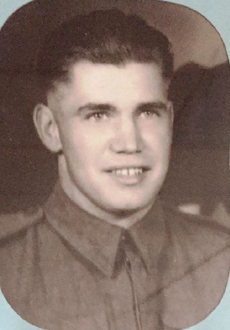 Glenn, born in Bezanson on October 5, 1924, was the 2nd oldest of George and Thelma Ames’ five children. George, originally from Brookdale, Manitoba decided to move to the Peace District to file a homestead application on land in the Bezanson area. The family lived on the homestead at Bezanson except for a short period of time when they operated the Ferry Inn at the Smoky River Crossing. Glenn attended the Lindsay One-Room School following which he worked on the family farm in the summer months and as a canter trim-saw operator in the wintertime. Glenn enlisted in the Army in April 1944 in Calgary. He trained at Red Deer where he successfully completed a “Class III Driver” course following which he was transferred to Debert, Nova Scotia. He sailed for England in December 1944. Glenn was a Private with the Royal Canadian Army Service Corps and served in Canada, United Kingdom and Continental Europe. He was discharged on demobilization on August 5, 1946 at Calgary. When Glenn returned home, he married Mavis Maude Boyd on August 15, 1947. They settled on a farm in Bezanson where they raised their family of three children; Randall (1948), Leonard (1950) and Bonny (1951). In 1974, Glenn sold the farm and the family moved to Grande Prairie. Glenn died on October 5, 1975 and was buried at the Glen Leslie Cemetery.