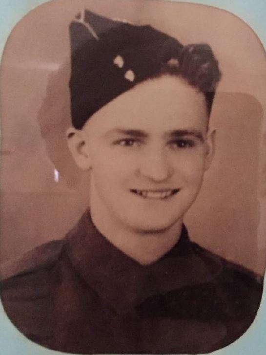 By 1942 when he was twenty years old, World War II had been going on for nearly three years. The US Army was sending a lot of vehicles driving by, just a mile from the farm, on their way to building the Alaska Highway. Robert signed up with the Canadian Forces on August 14th, 1942.